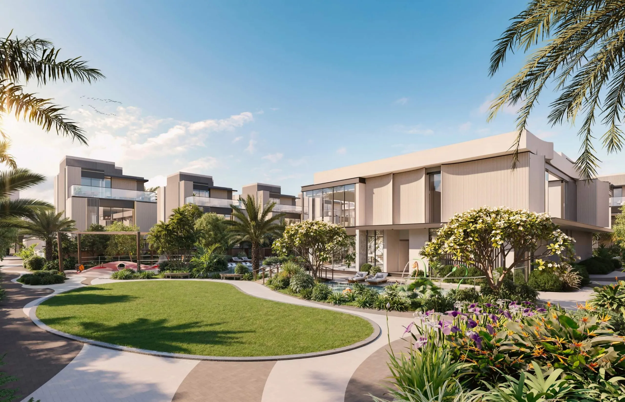 A boutique gated community with townhouses and villas set around parklands and a signature crystal lagoon, emphasising low density luxury living.